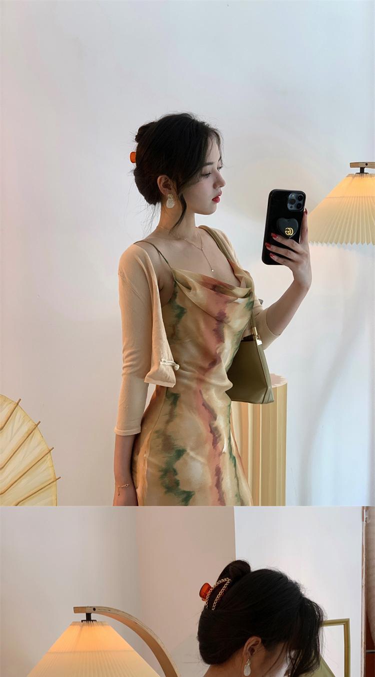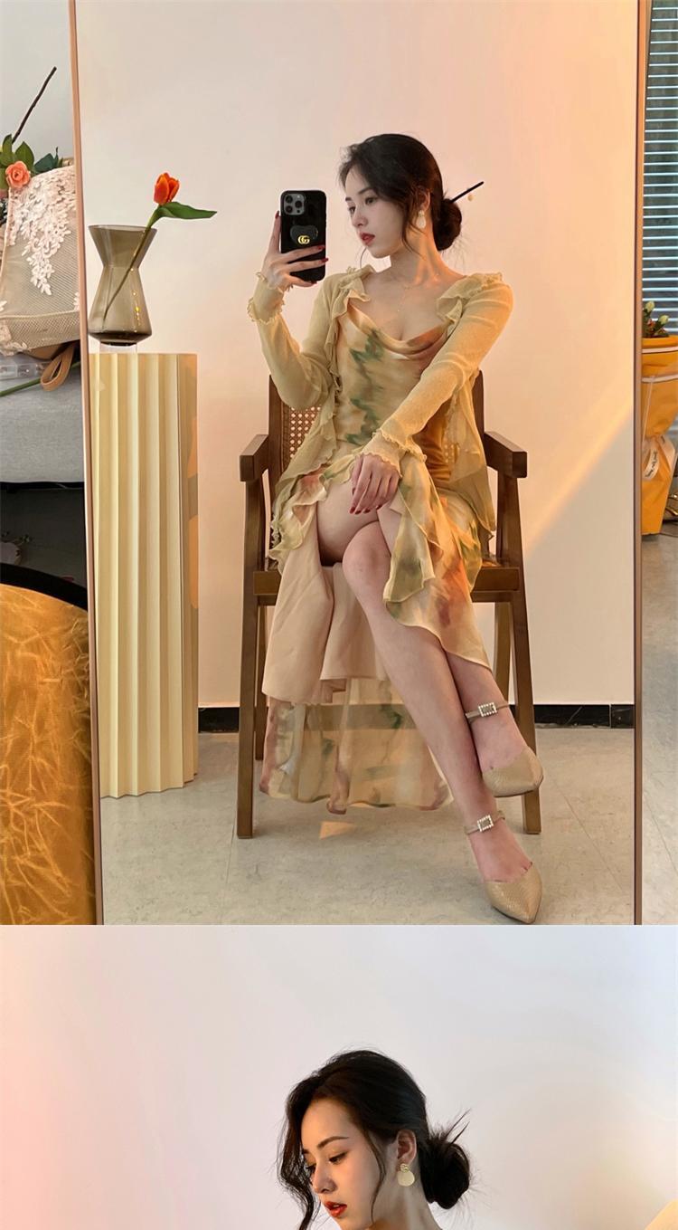 フランスのレトロなティーブレイク穏やかな風フローラルサスペンダードレスウエストスリム気質セクシーなスイングカラーサスペンダードレス 花柄 yingd50925303336