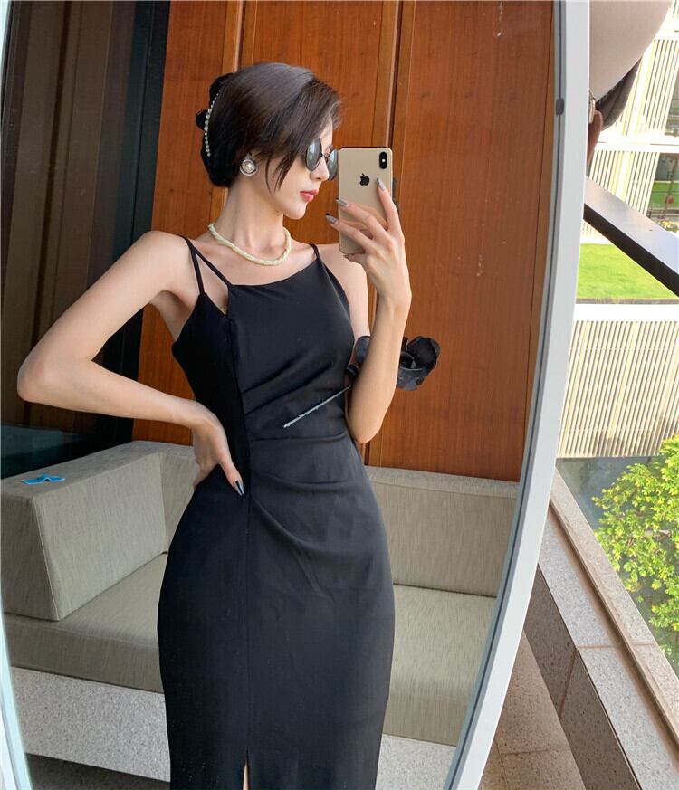 香港風レトロシックなサスペンダースカート風合い高級感のあるロイヤルシスターデザイン不規則な中空サスペンダードレス yingd34698498161