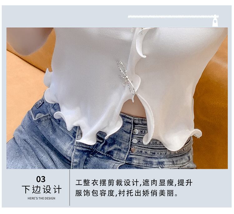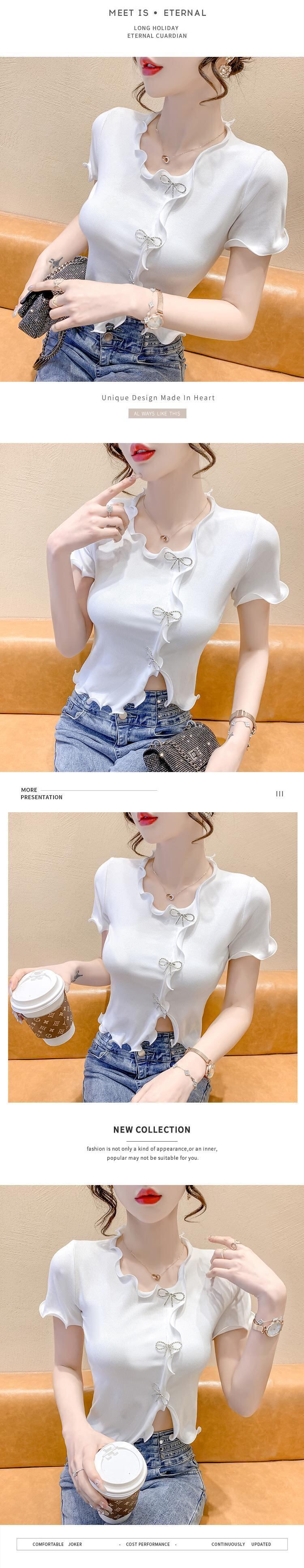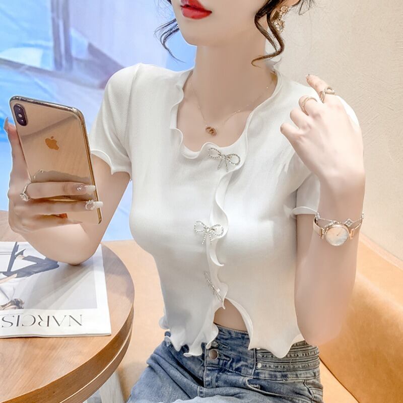 シックで美しい小さなシャツ2022年夏の自己啓発セクシーな純粋な欲望デザインセンスボウとエインスタイルのショートトップ リボン サマー 夏物 ピュア yingd56530775982