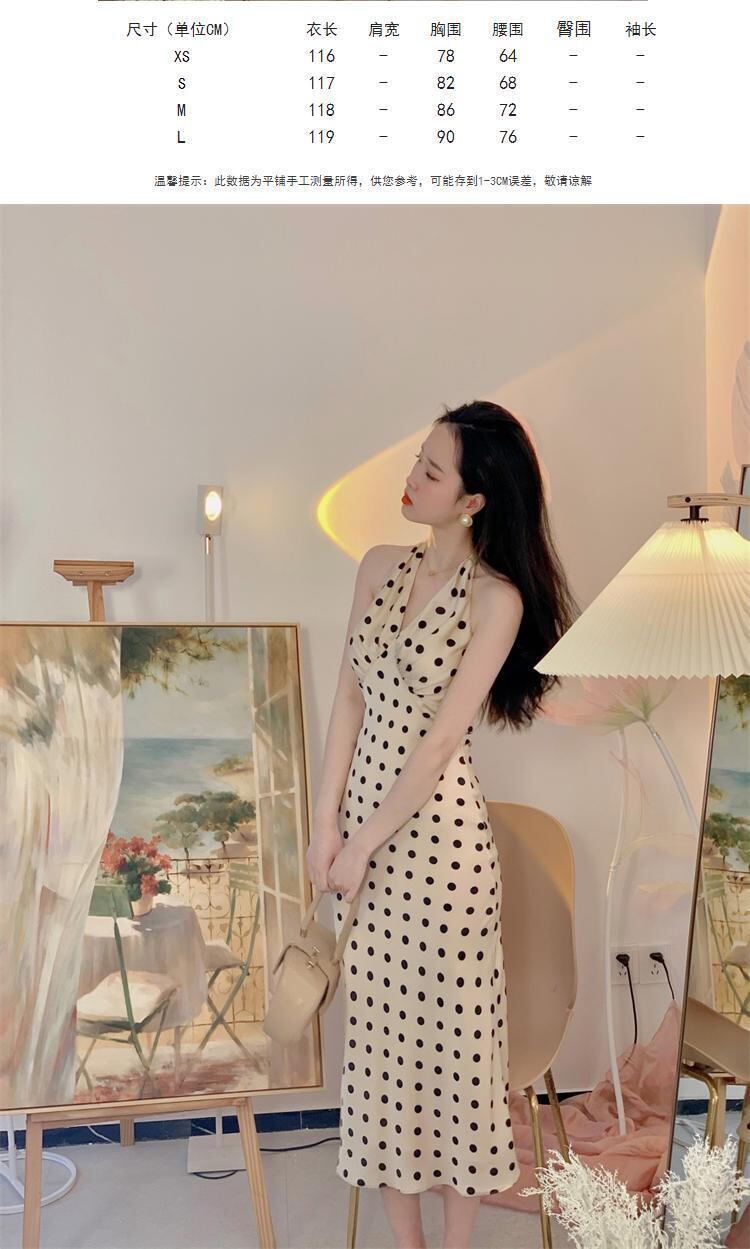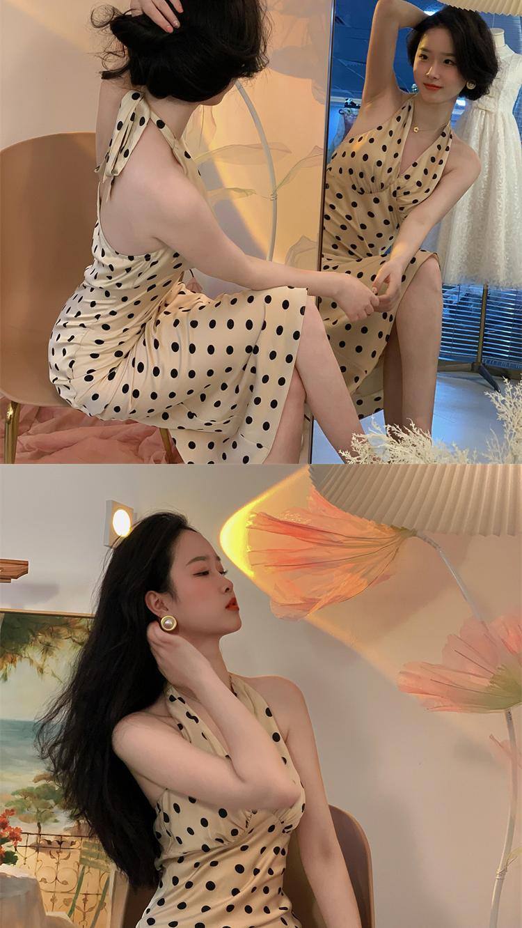 フレンチレトロ水玉ハンギングネックセクシーな背中の開いたドレス女性の夏のハイエンドウエスト甘くてスパイシーなスカート痩身 大人ガーリー スウィート キュート カジュアル サマー 夏物 yingd29186595305