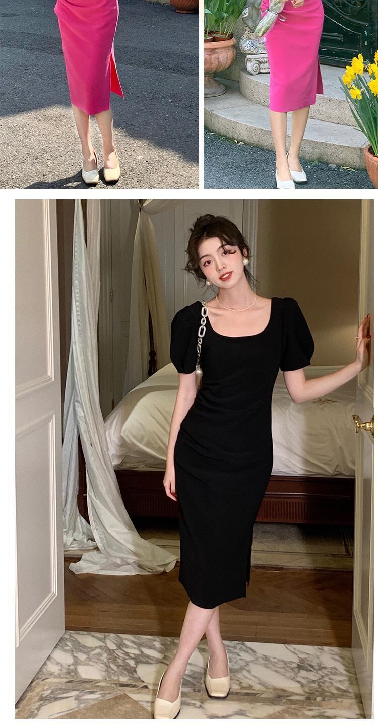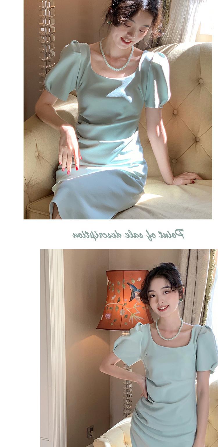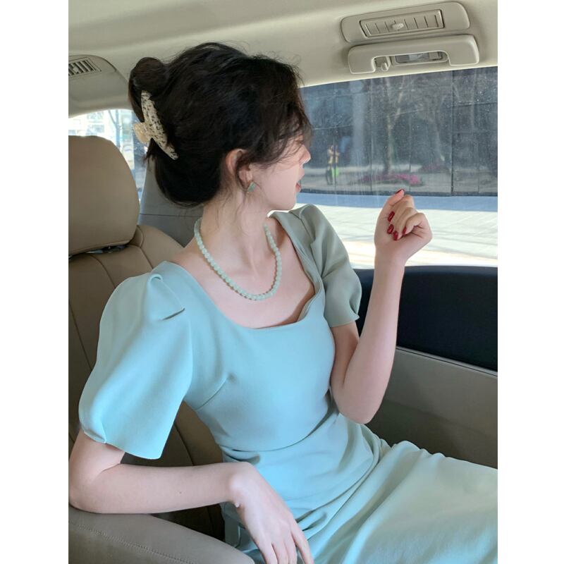 フランスのハイエンドシック、ユニーク、見事な、美しい、小さなスカート、ウエスト、薄い、スクエアネック、パフスリーブドレス、女性の夏 サマー 夏物 スクウェア yingd19129799867