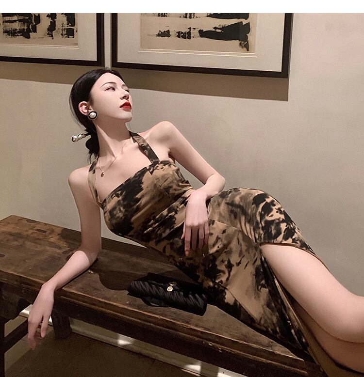 フランスのレトロなティーブレイクホルタースリングドレス女性の夏のウエストスリム気質スリングスカート高品質の質感 サマー 夏物 yingd11983650300