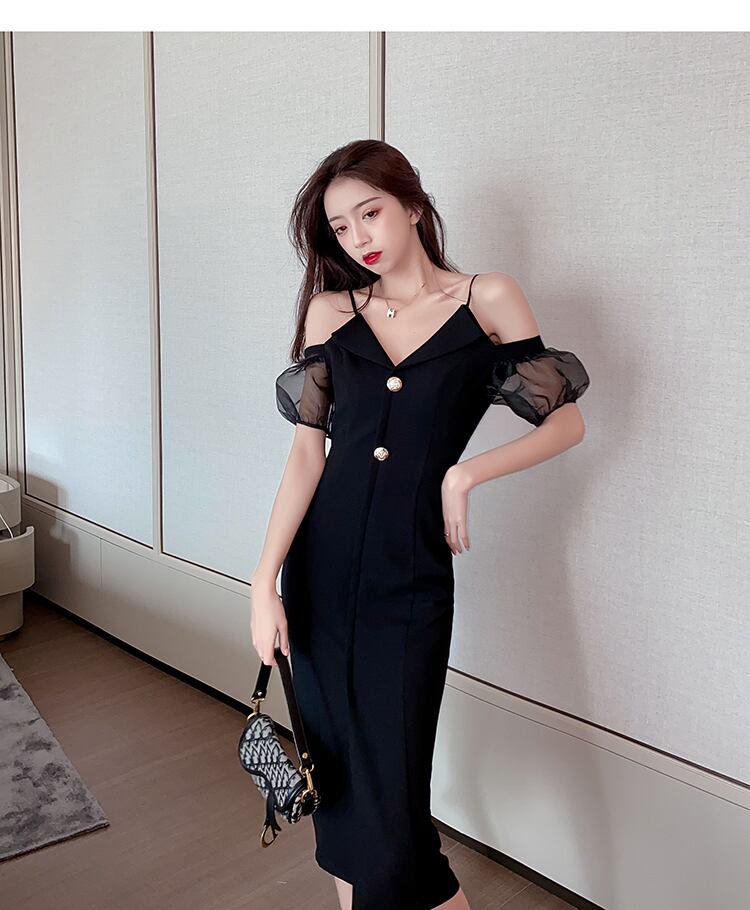 フランスの香港スタイルのレトロシックなサスペンダースカートスリムフィットとスリムな気質セクシーなオフショルダーシックな見事なドレス夏 サマー 夏物 yingd36065259241