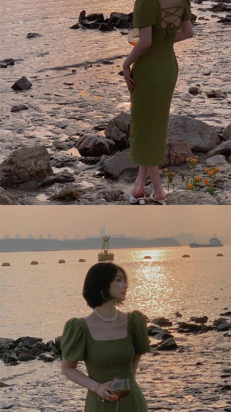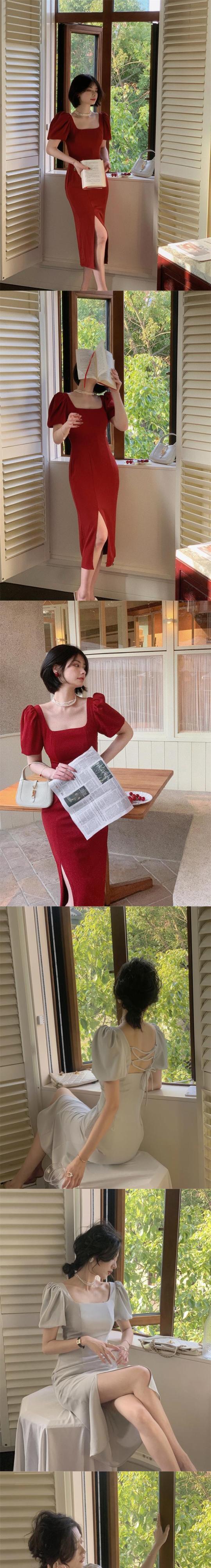 フランス初恋ミルクスウィートスカート優しいレトロウエスト細い気質セクシーな背中の開いたパフスリーブドレス女性の夏 大人ガーリー キュート カジュアル サマー 夏物 yingd97906517042