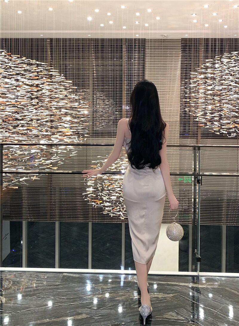 香港スタイルのレトロシックなスカートの質感の高級サテンアセテートサスペンダードレス2022新しい女性のサマードレス 夏物 yingd82177296554