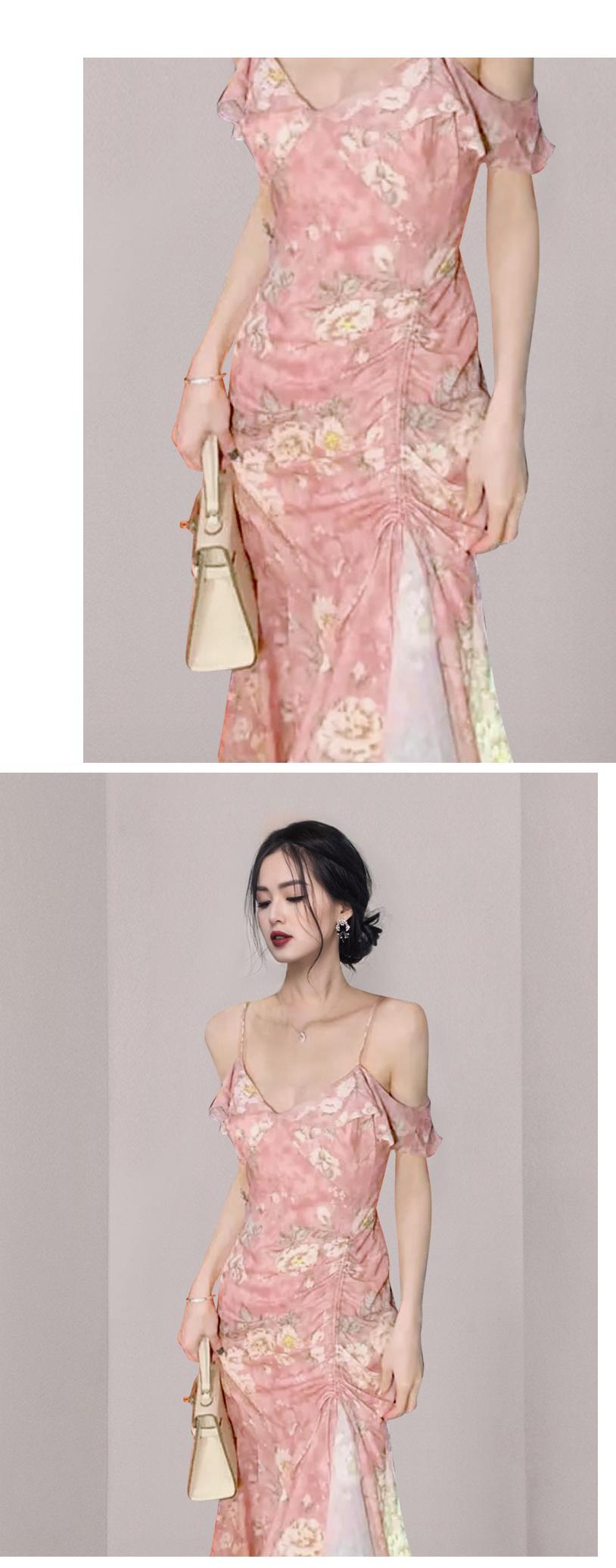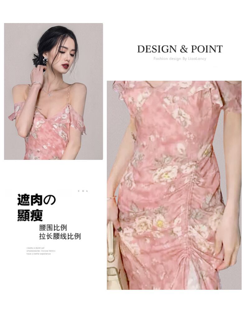 フレンチティーブレイクベルフラワー初恋ロングスカート風合いハイエンド感のウエスト気質フィッシュテールフローラルサスペンダードレス夏 サマー 夏物 花柄 フラワーデザイン yingd17158995649