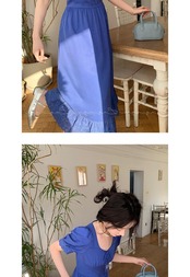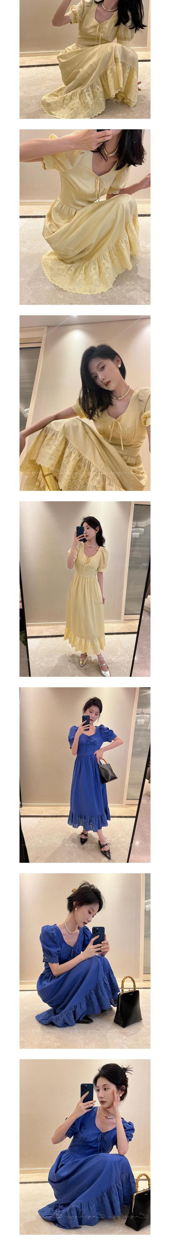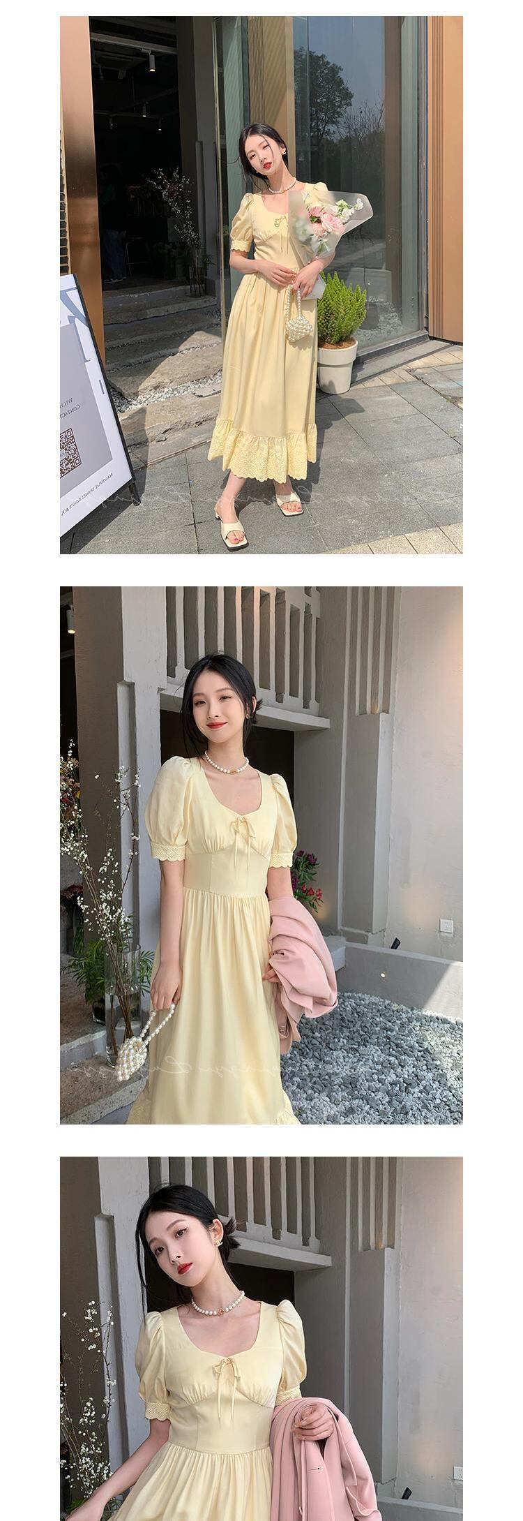 フレンチティーブレイクアーティスティックセンスファーストラブスカートシックで見事なハイエンドパフスリーブドレスサマーウエストロングスカート 夏物 yingd53084763176