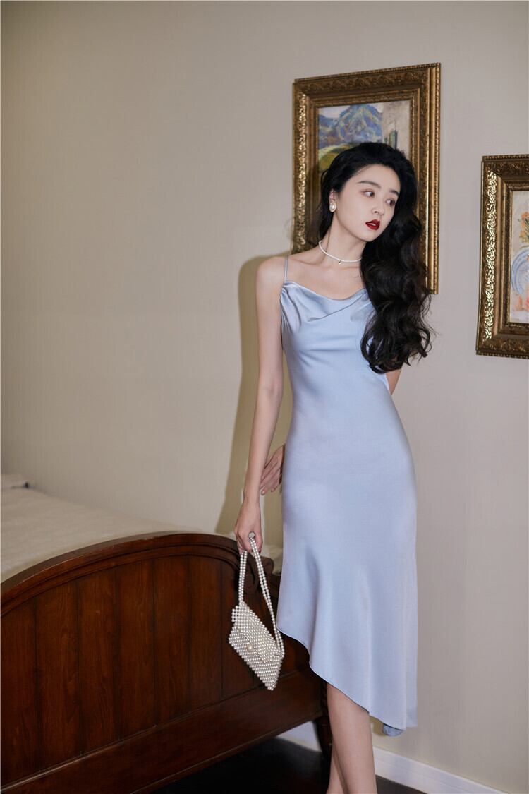 フランスの純粋な欲望スタイルセクシーな背中の開いたサスペンダードレスウエストスリム気質ハイエンドロイヤルシスタードレス女性の夏 サマー 夏物 ピュア yingd99831138993