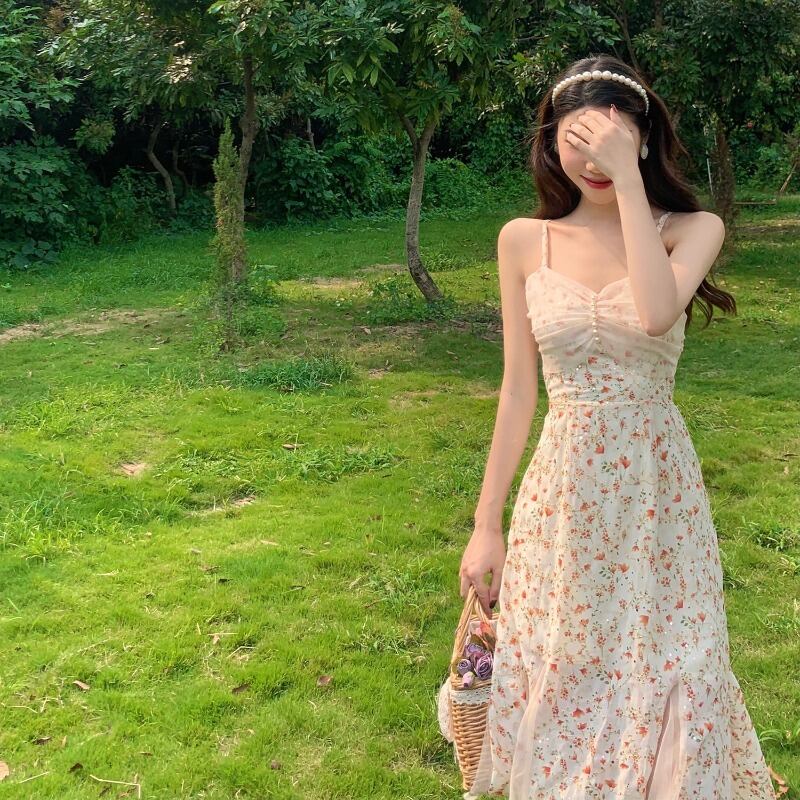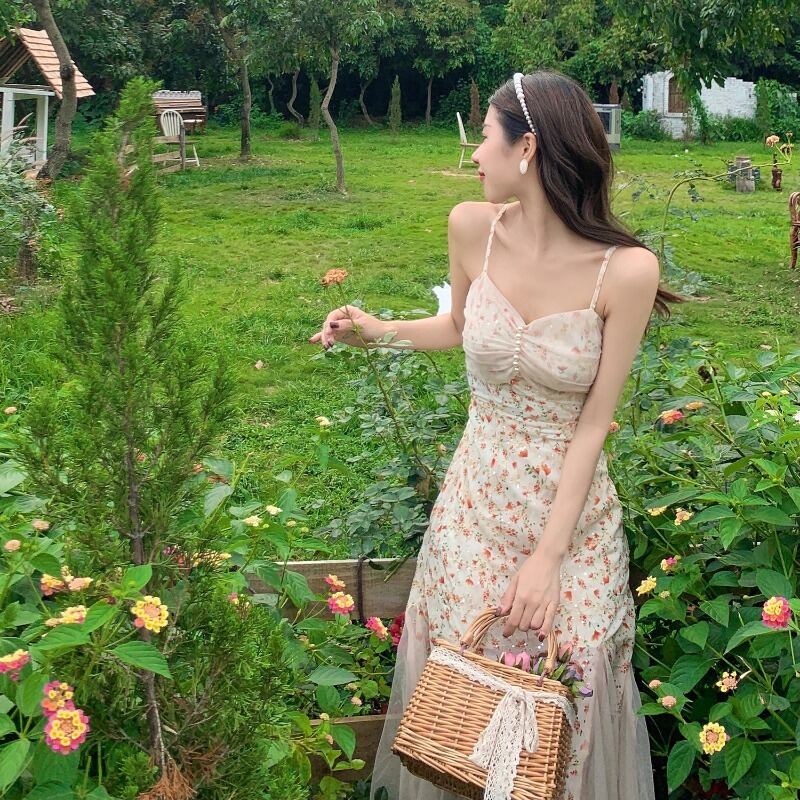 フランスのレトロな優しいスタイルのティーブレイクベルフラワーフローラルサスペンダースカートは塩辛いまたは甘い初恋のサスペンダードレス女性の夏にすることができます 大人ガーリー スウィート キュート カジュアル サマー 夏物 花柄 フラワーデザイン yingd48424515564