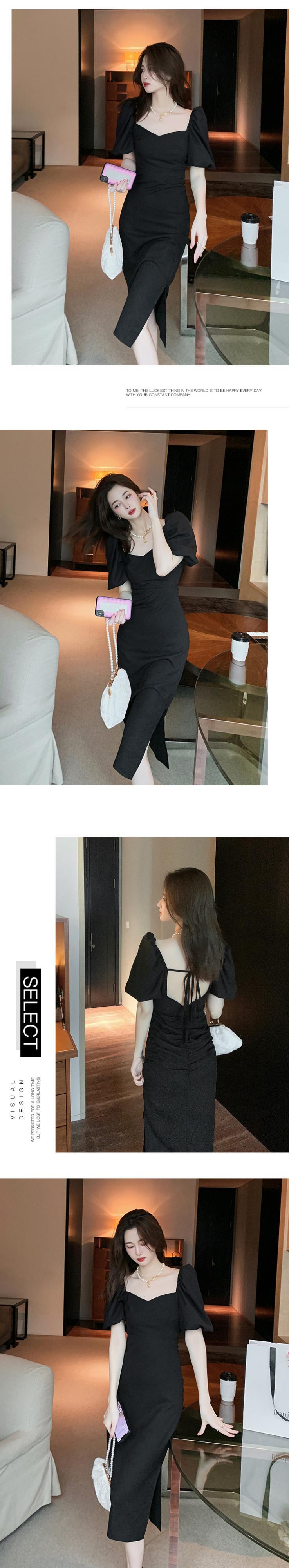香港スタイルのレトロシックなスカートの質感高品質のロイヤルシスターミルクスカートセクシーな背中の開いたパフスリーブドレス2022 yingd86615092203