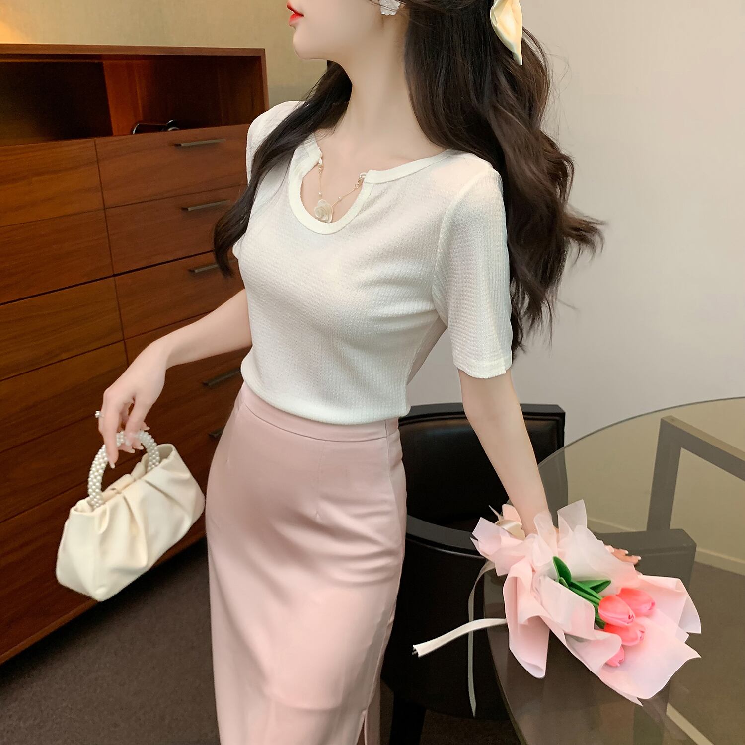 半袖Tシャツ女性の2022年夏新しい純粋な欲望穏やかな風の気質トップデザインセンスニッチオールマッチボトミングシャツ サマー 夏物 ピュア yingd85482050407