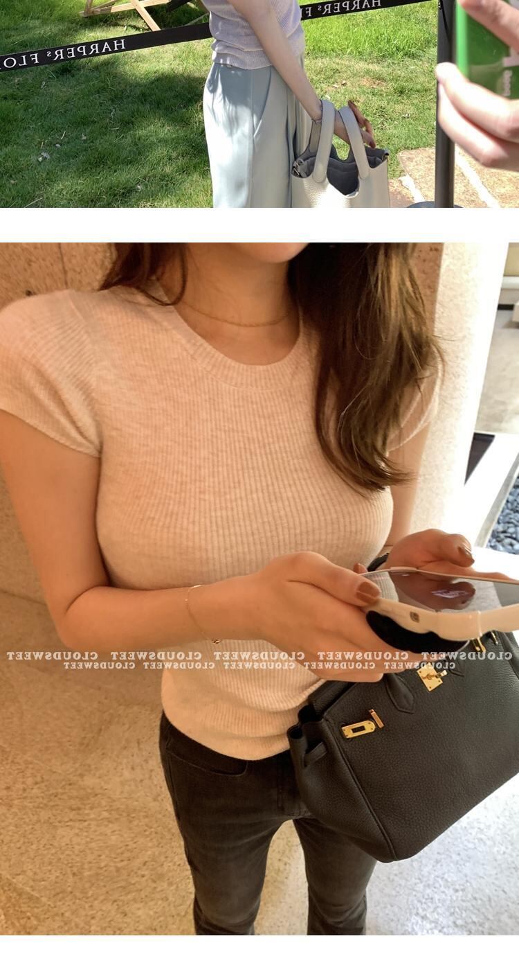 サマードレス2022新デザインセンスニッチニットTシャツレディーススリムフィット半袖ボトミングシャツトップス 夏物 yingd97646274795