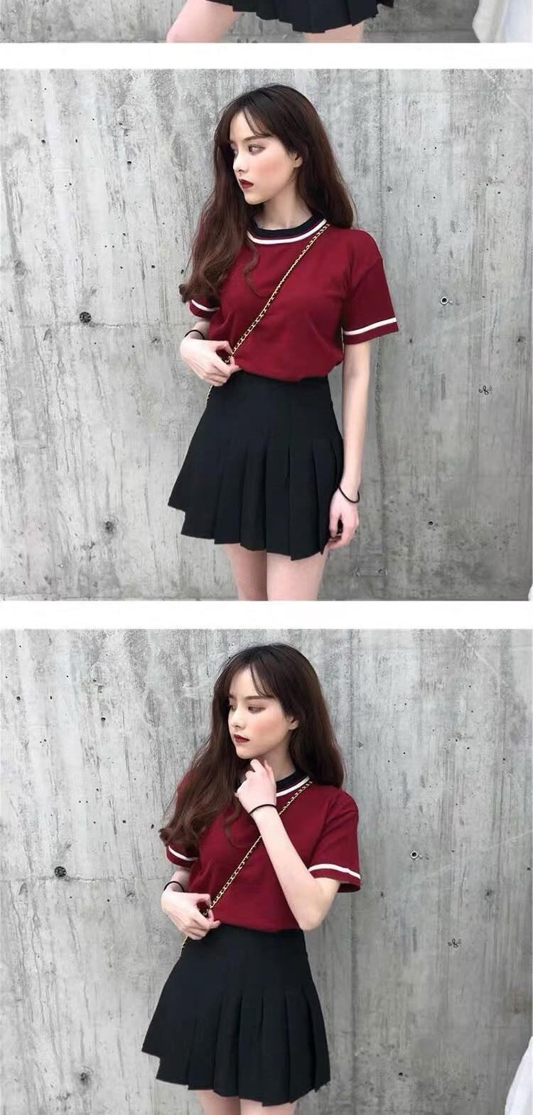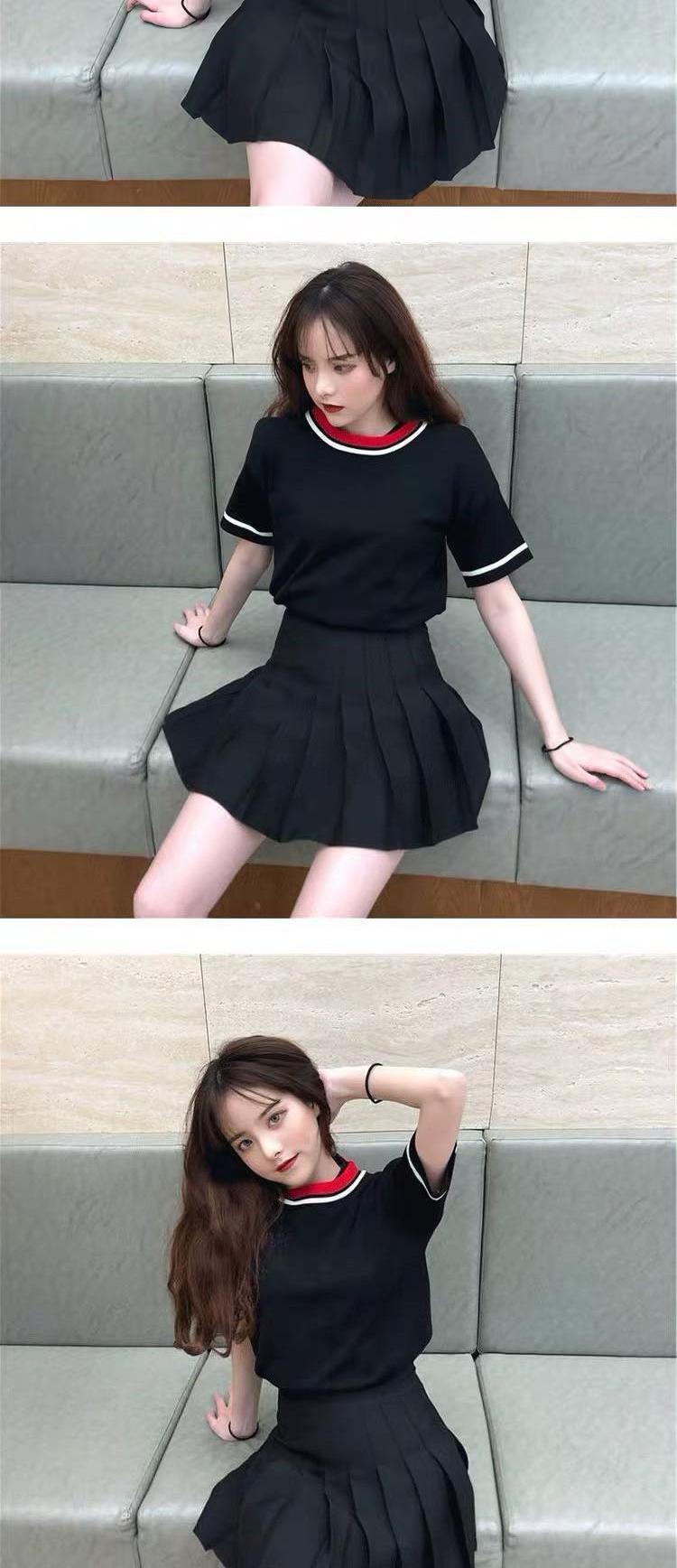 色:ブラックブラウスブラックスカート,レッドトップ+ブラックスカート,ホワイトトップ+ホワイトスカート