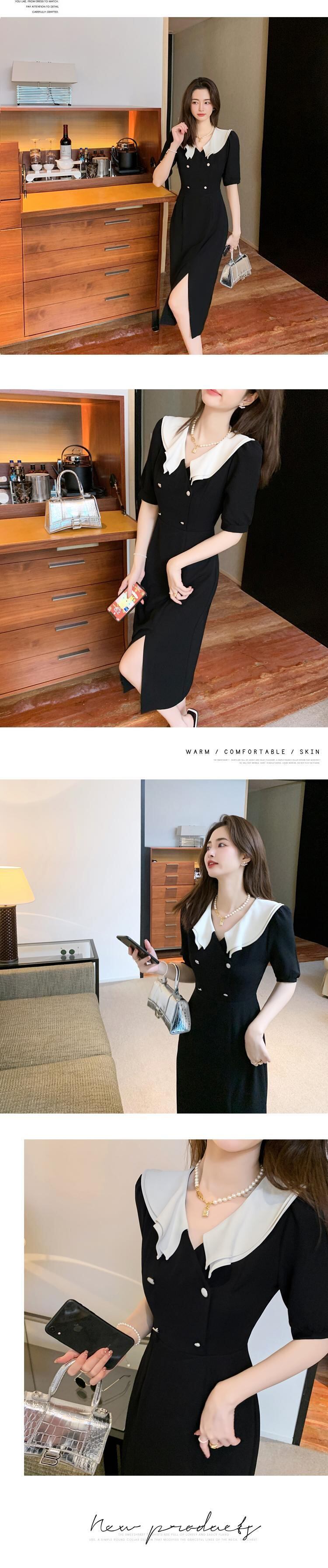ウエストアートハイエンドスカートデザインセンスニッチフレンチレトロヘップバーンダブルブレストドレスレディースサマードレス 夏物 yingd24636141185