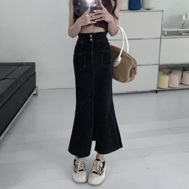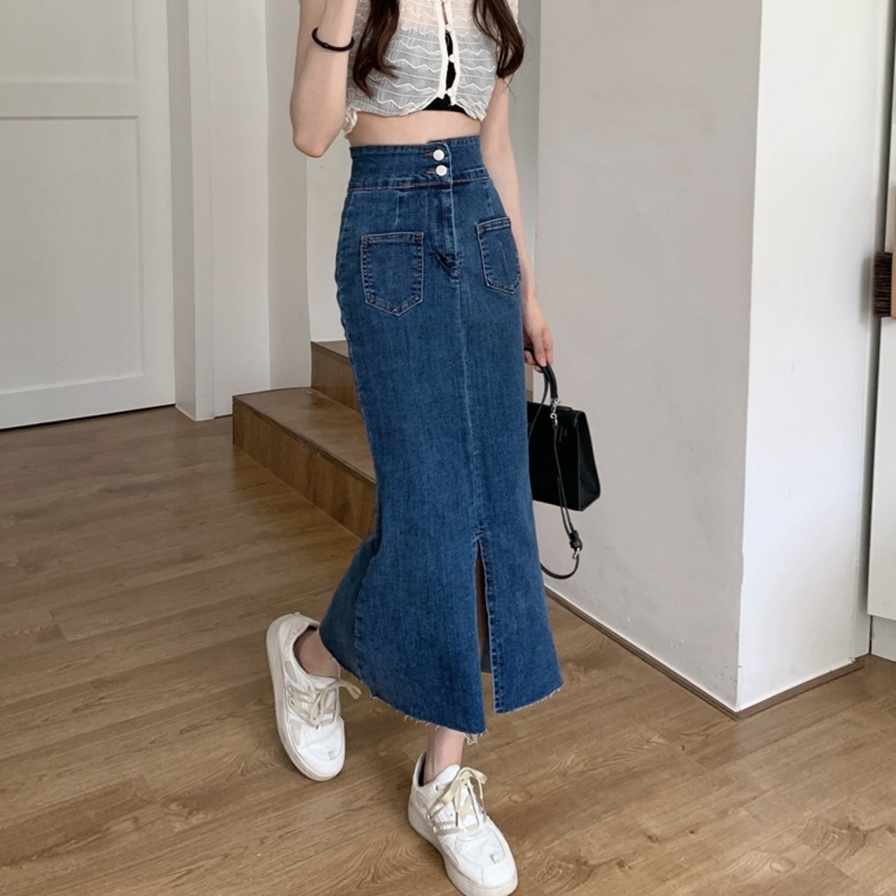 レトロなハイウエストスリムデニムマーメイドスカートレディースサマーAラインスカートデザインニッチミドル丈ヒップスカート ハイウェスト 夏物 yingd96106780777