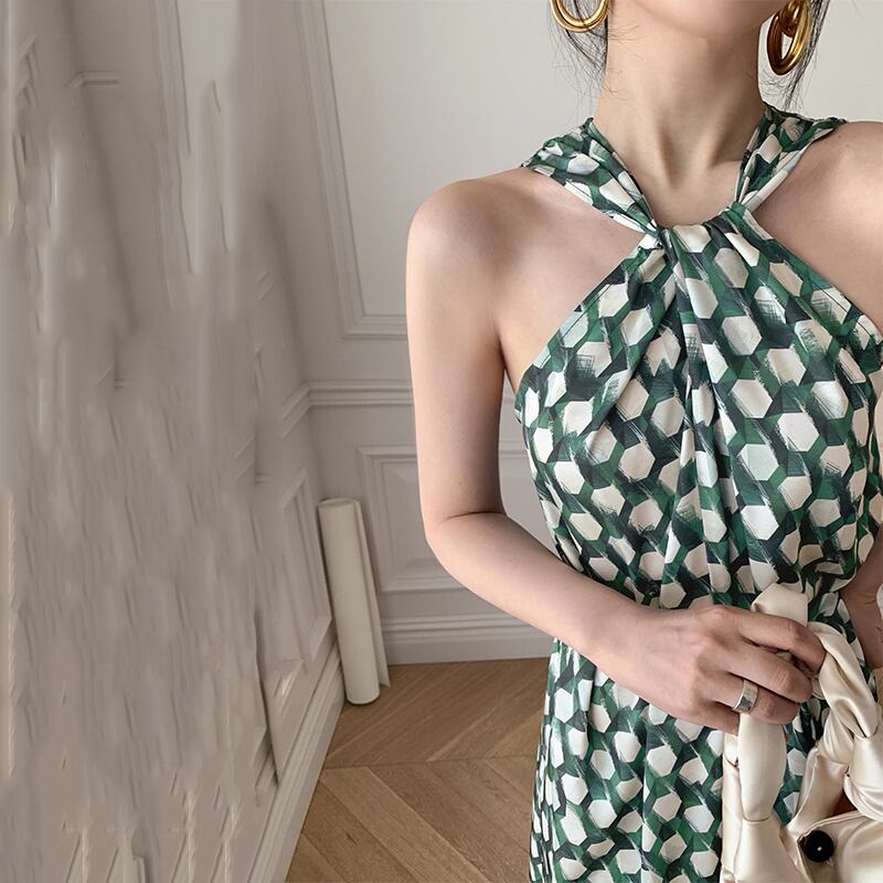 フレンチティーブレイクハイエンド見事なフローラルロングドレスウエストスリム気質デザインホルターネックストラップドレス夏 サマー 夏物 花柄 yingd25921141348