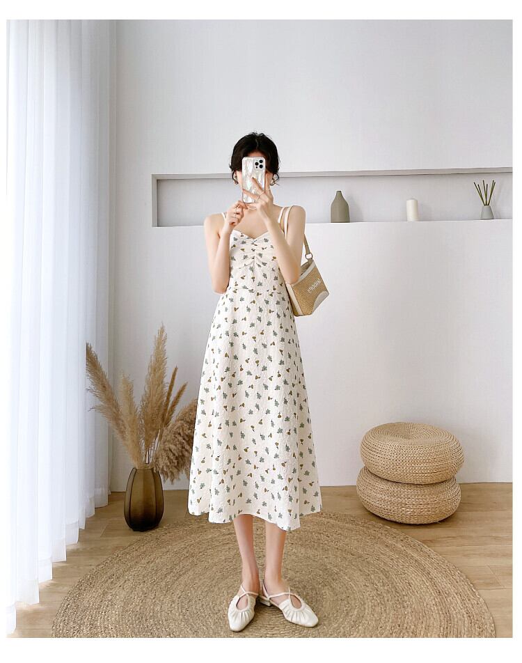 フランスのレトロなハイエンドティーブレイクフローラルサスペンダードレス女性2022年夏の新しいスイートスーツスカートツーピース 大人ガーリー スウィート キュート カジュアル サマー 夏物 花柄 yingd42615154020