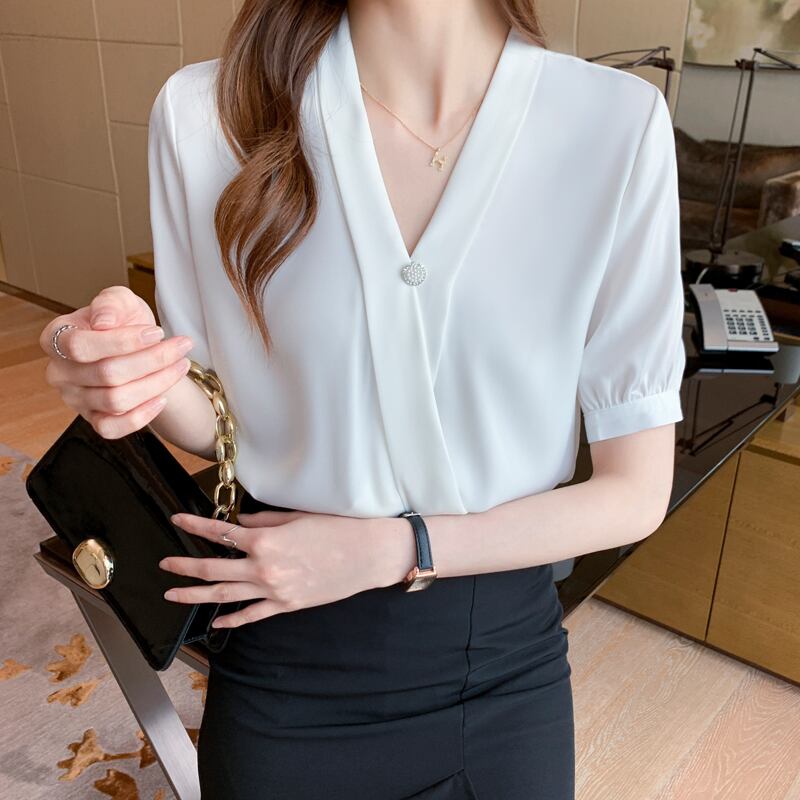 サマードレス2022新デザインセンスニッチVネックシフォンシャツトップレディース半袖美しいスモールシャツウエストウエストウエスタンスタイル 夏物 yingd27648484400