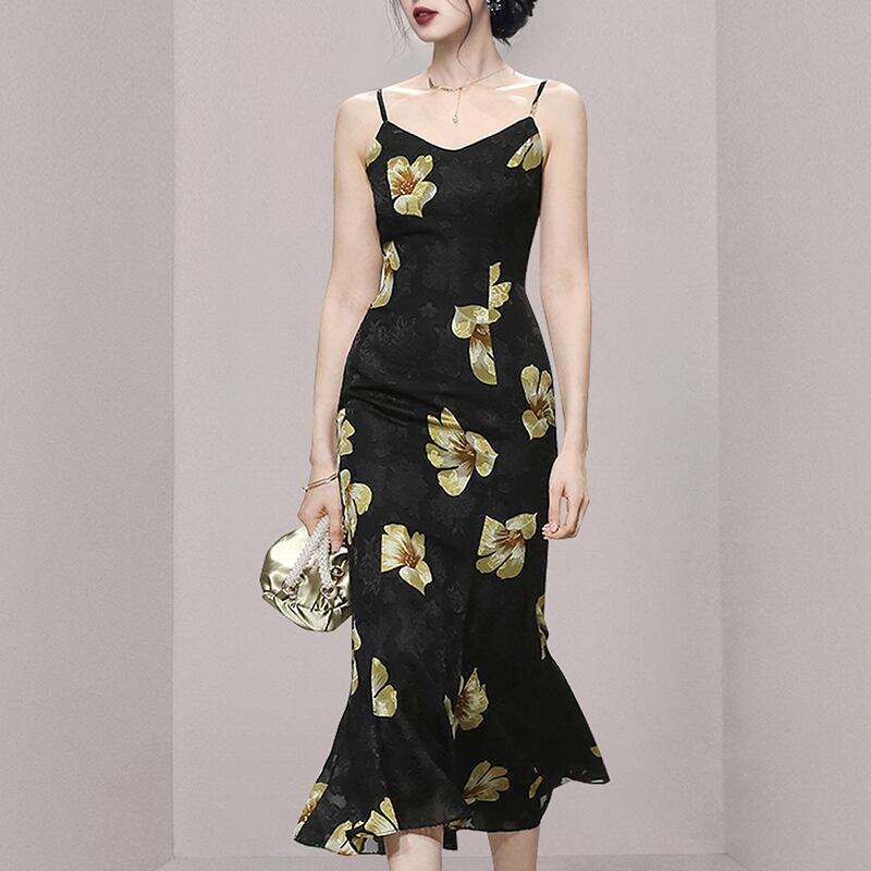 フレンチティーブレイクハイエンド見事なスリングドレスウエストスリム気質フィッシュテールフローラルスリングドレス女性の夏 サマー 夏物 花柄 yingd49667656486