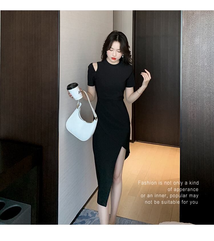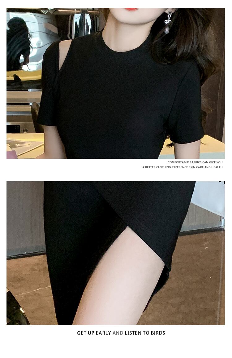 -シックで美しいスカートのデザインを終了不規則でセクシーなオフショルダードレスヘップバーンスタイルのリトルブラックドレス女性の夏 サマー 夏物 yingd13602040621
