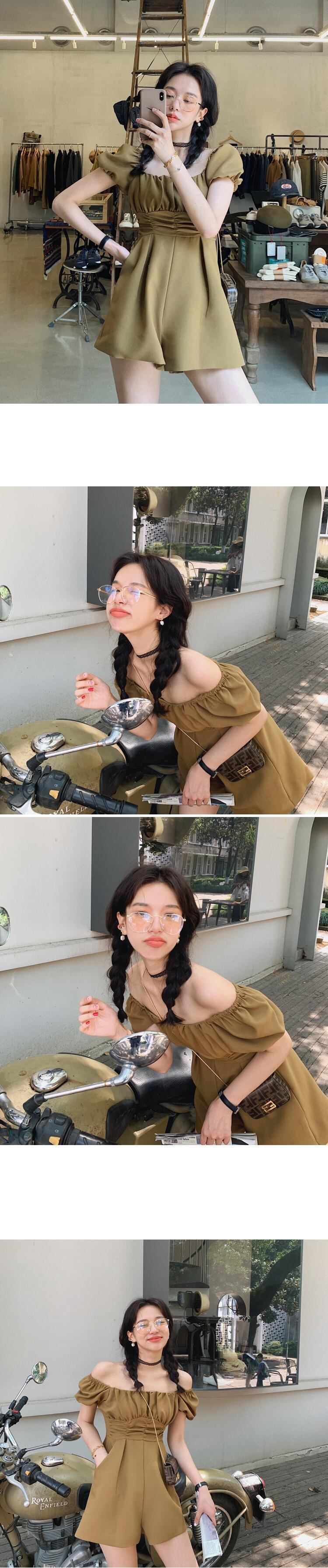 ワイドレッグショーツ女性の2020年夏の新しいフレンチレトロパフスリーブウエストと薄いワンワードカラーストラップレスジャンプスーツの女性 サマー 夏物 ブルマー yingd56830967489