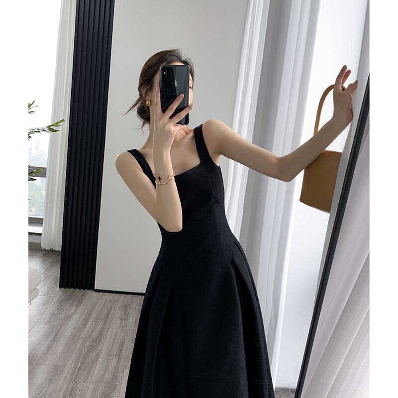 フランスのレトロなヘップバーンスタイルのサスペンダードレスウエストスリム気質ハイエンド見事なサスペンダードレス女性の夏 サマー 夏物 yingd58365069527