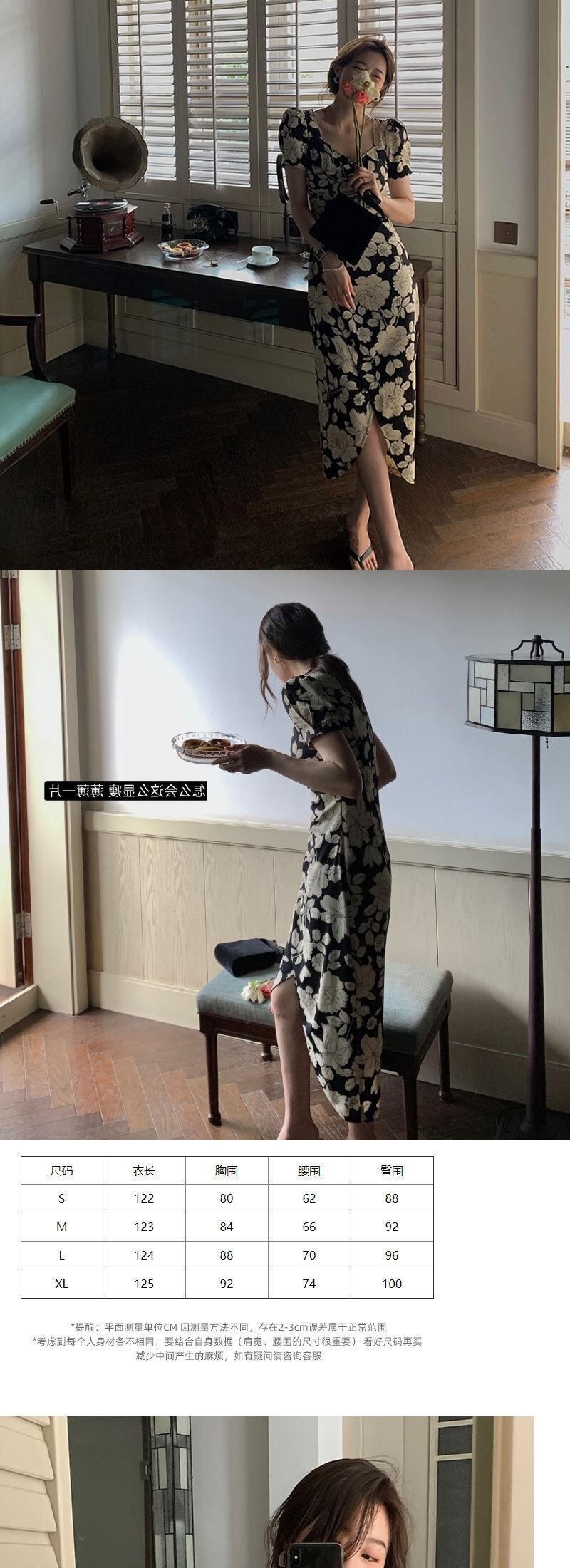 -エンドティーブレイクベルフラワーファーストラブロングスカート、ウエストと細い気質のスクエアネックパフスリーブフローラルドレス2022 花柄 フラワーデザイン スクウェア yingd31013711457