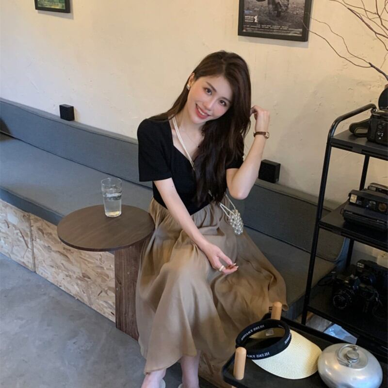-終わり、シック、美しいスカート、芸術的なセンス、初恋のスカート、ウエスト、薄い、気質、ステッチドレス、女性の夏 サマー 夏物 yingd51311421337