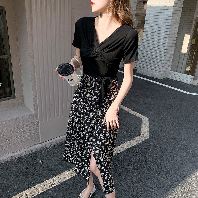 サマースーツ女性2022年夏新作ハイエンドセンスロイヤルシスターデザインセンス半袖Tシャツフローラルスカートツーピースセット 夏物 花柄 yingd9090496689
