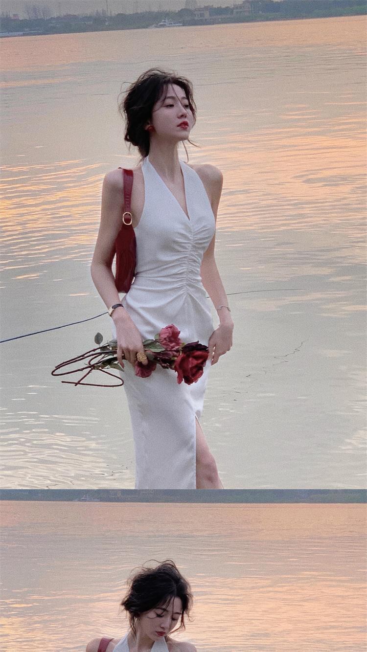 ウエストインアートのハイエンドスカート、ロイヤルシスター、軽くて馴染みのあるスタイル、シックでユニークなデザイン、スプリットホルタードレス、女性の夏 サマー 夏物 yingd87172015706