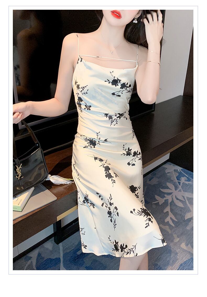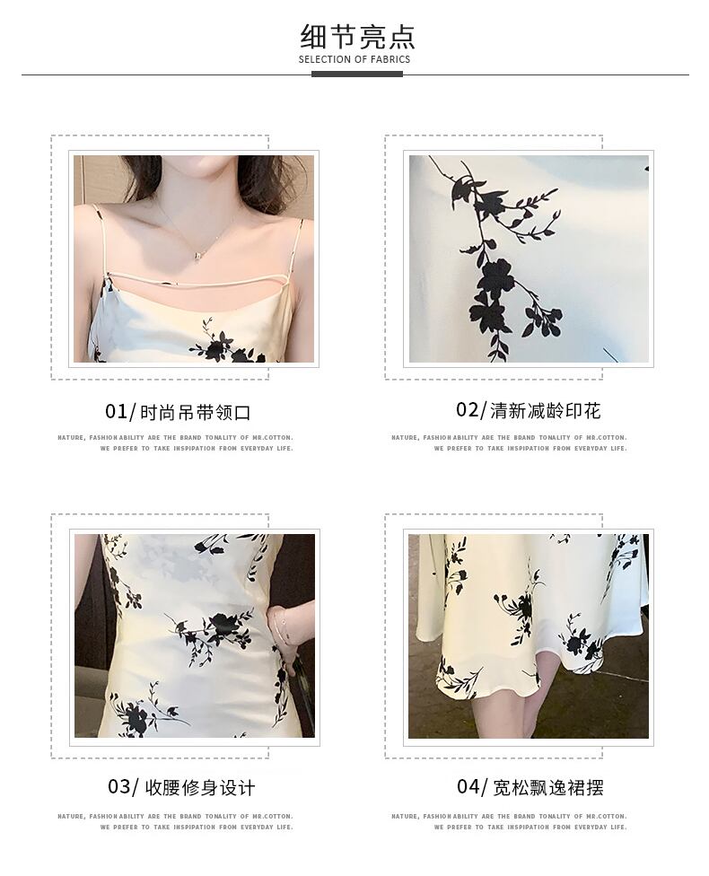 チャイニーズスタイルのナショナルスタイルのレトロなインクプリントサスペンダードレスシックなウエストハイエンドフローラルサスペンダードレス女性の夏 サマー 夏物 花柄 yingd3396251723