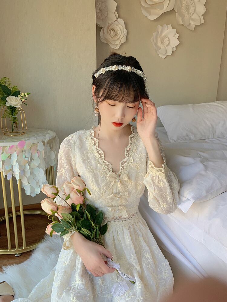 2021年秋新作ウエストスリミング気質ハイエンドライトラグジュアリーセクシーVネックウエストレスレースワンピースレディース オータム 秋物 yingd61160779682