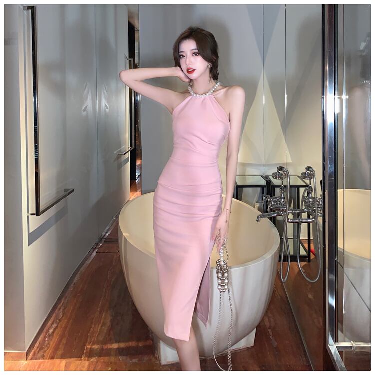 シックで個性的な見事なスカートの風合いハイエンドセンスゆじえライトおなじみのスタイルデザインパールホルタードレス女性夏 サマー 夏物 スカート 真珠 yingd72293564554