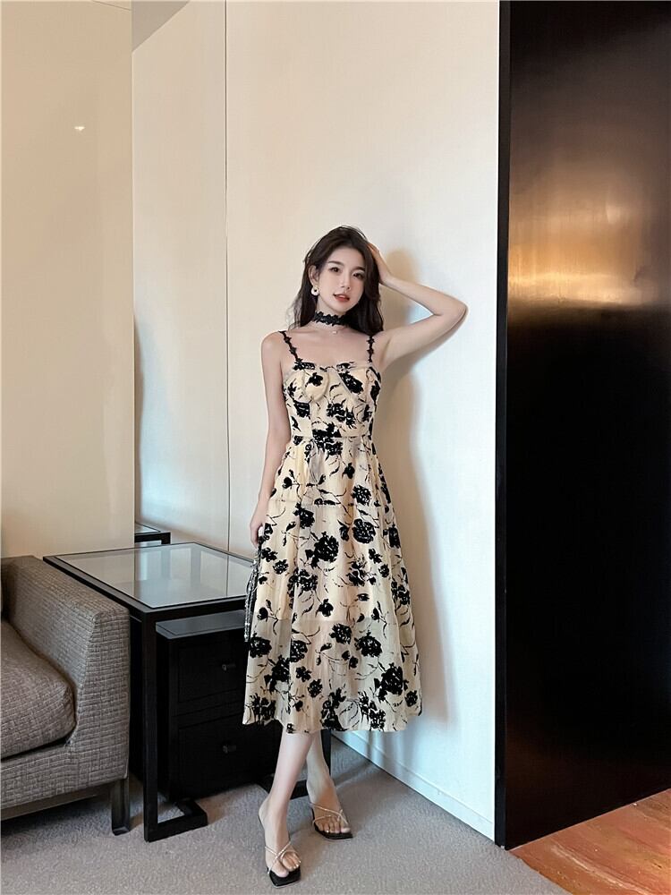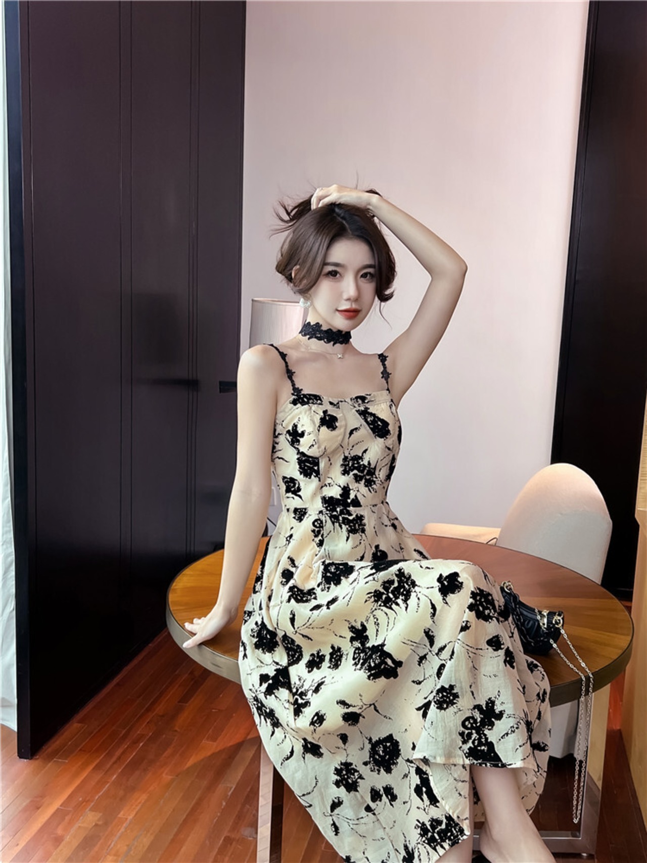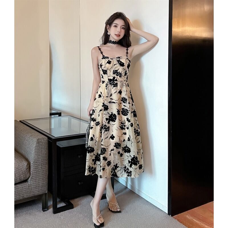 フランスのレトロなハイエンドヘップバーンフローラルスカートニッチデザインロングスカートバックレスサスペンダードレス2022新しい 花柄 yingd69518637056