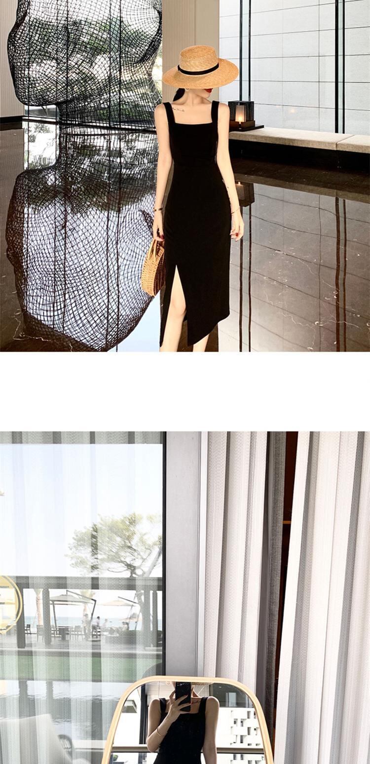 フランスのレトロな黒のサスペンダードレス2022新しいハイエンドロイヤルシスターセクシーなスリットサスペンダースカート夏の女性 ブラック サマー 夏物 yingd97098310325
