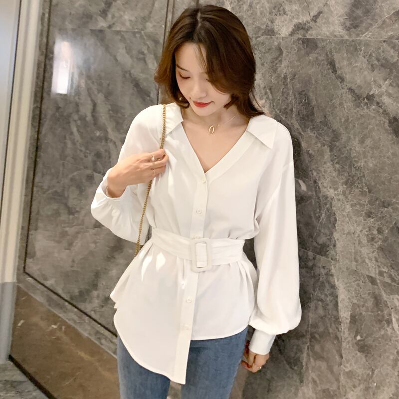 2020年秋新作ルーズレトロ香港風長袖シャツレディースデザインニッチイレギュラーシフォンシャツ ロング オータム 秋物 yingd5161216969