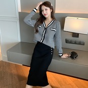 セータースーツスカートレディース2020秋冬新ウエストと薄手ニットカーディガンスカートツーピースレディース オータム 秋物 ウィンター 冬物 yingd17589362380
