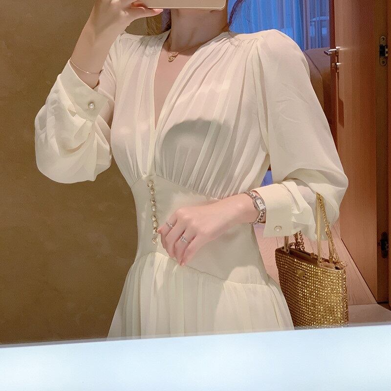 ロングスカート、足首の妖精の空気、ウエスト、細い気質、女神ファン、セクシーな軽くて成熟したスタイル、長袖シフォンドレスの女性 yingd75643988444