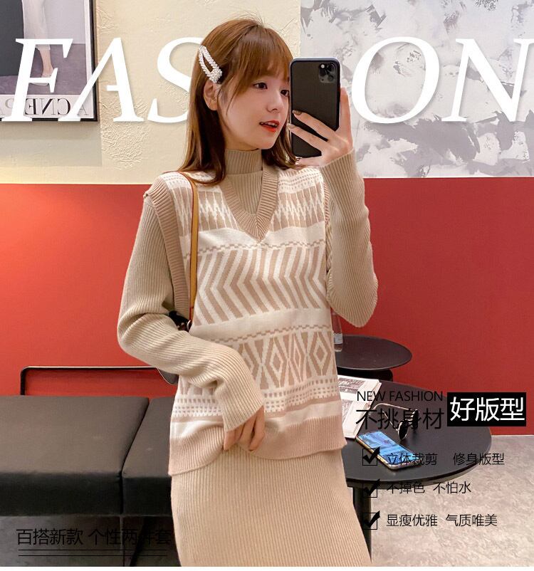 ニットベストドレススーツレディース2020秋冬新ネットレッドロング膝丈セータードレスツーピースセット オータム 秋物 ウィンター 冬物 yingd94723765993