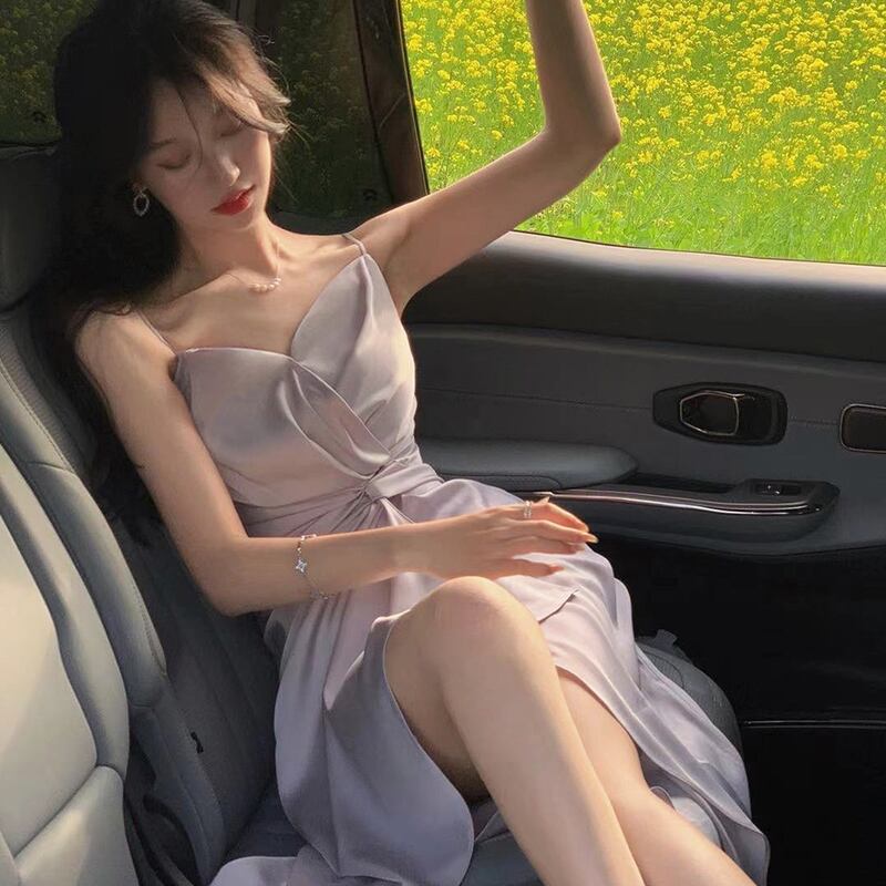 シックでユニークなデザインのレースサスペンダードレス2022新しい女性の夏のウエスト高品質のサテンサスペンダースカート サマー 夏物 yingd96131035683
