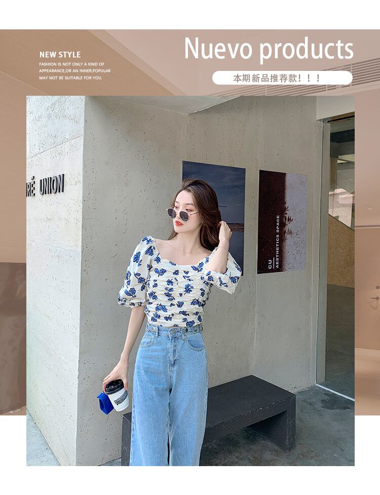 シックでユニークなショートトップの女性のサマードレス2022新しいフランスのデザインセンスニッチ半袖プリントシフォンシャツの女性 夏物 yingd11304141921