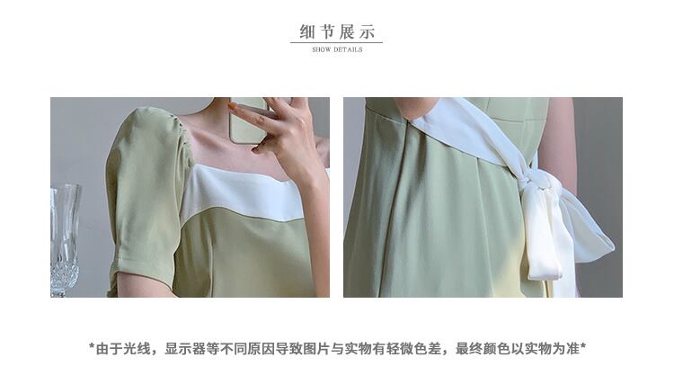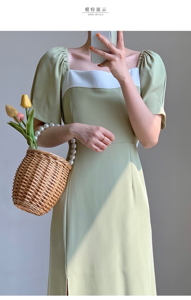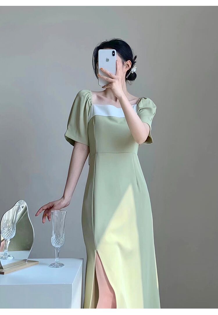 フランスのレトロな光で調理されたロイヤルシスタースタイルのサマードレス気質の女神ファンシックなウエストスクエアネックスリットドレス女性の夏 夏物 スクウェア yingd44894676764