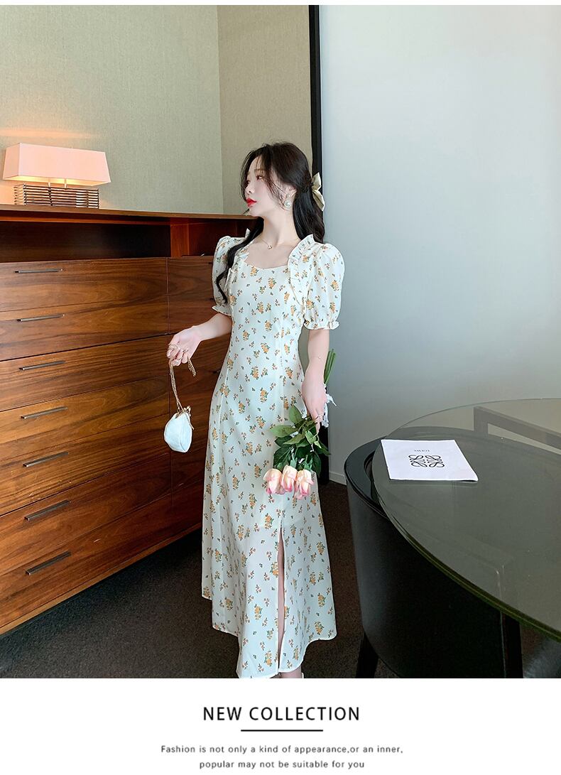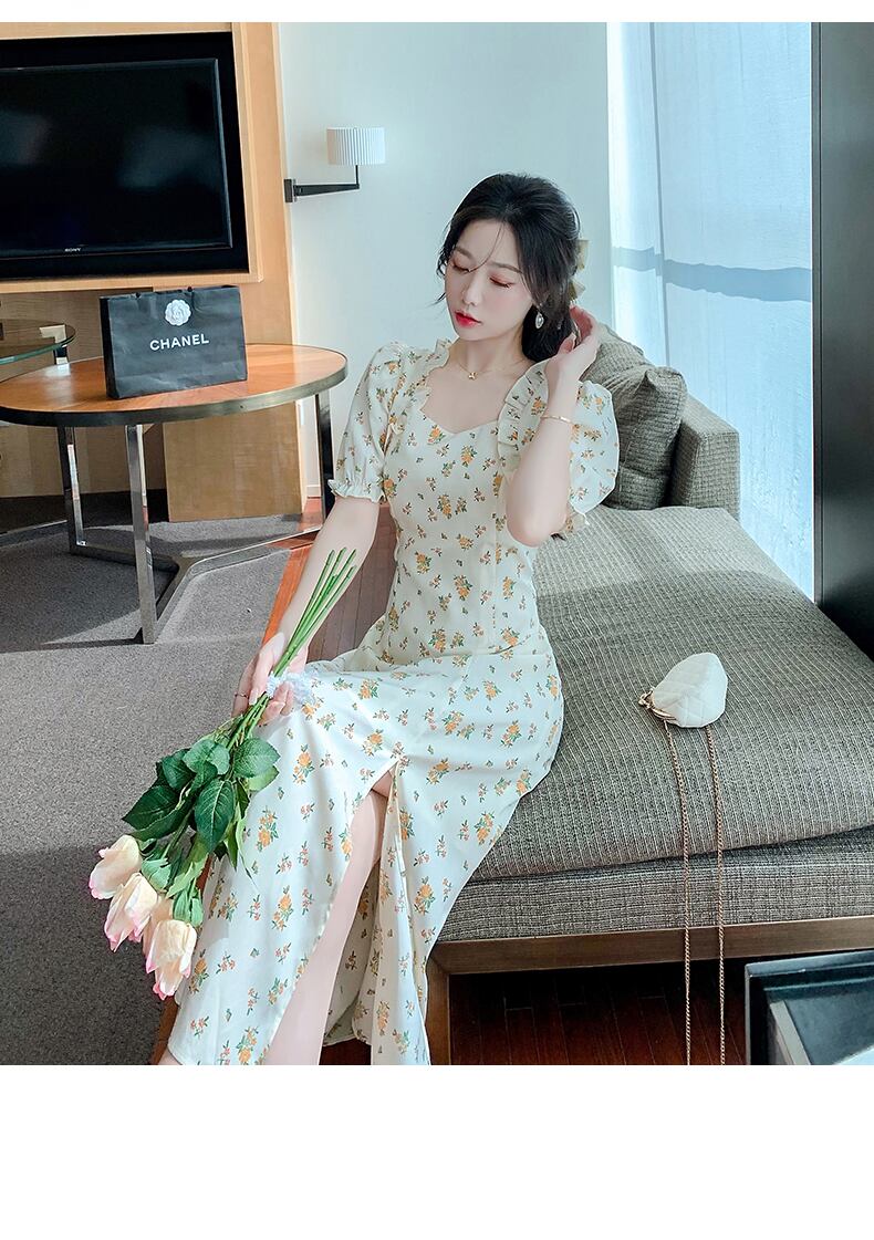 フランスの優しいスタイルのティーブレイクベルフラワーフローラルドレスデザインニッチシックなウエストパフスリーブフローラルドレス女性 花柄 フラワーデザイン yingd40852480751