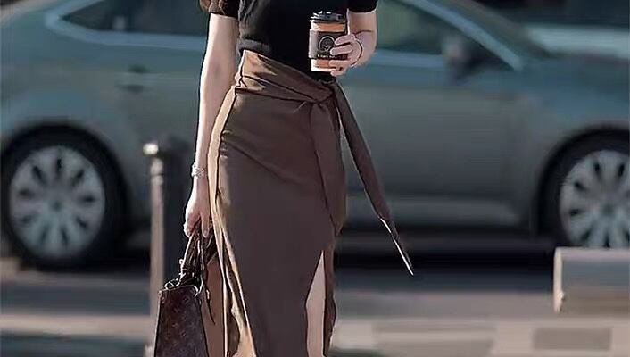 色:コーヒートップ,ブラックトップ,コーヒー色のスカート,グレースカート