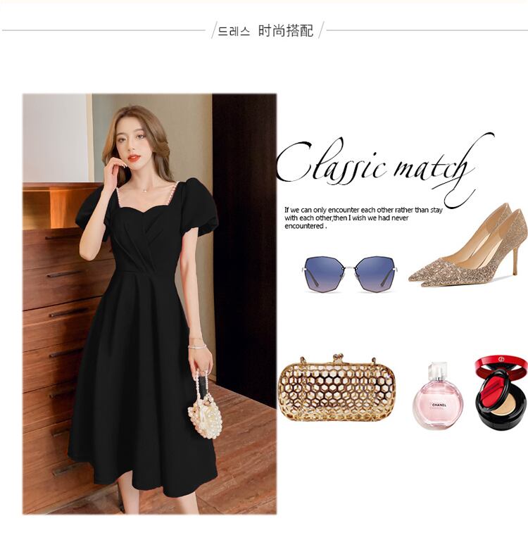 シックでユニークなデザインのニッチドレス2022年の新しい女性の夏のハイエンドウエストパフスリーブミドル丈スカート サマー 夏物 yingd35715879136