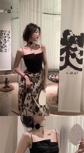 フランスのレトロなヘップバーンスタイルのサスペンダードレスハイエンドシック、ウエストと薄い気質ステッチサスペンダードレス女性 yingd97151512756