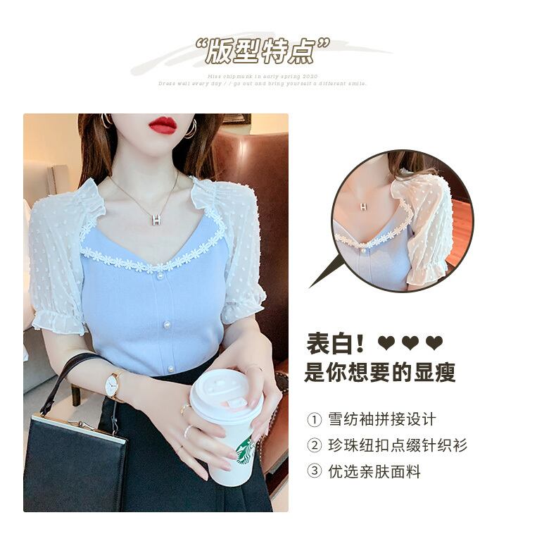 ユニークで特別な小さなシャツ2022年夏の新しいスタイルの洋風デザインの小さなパフスリーブレースステッチシフォンシャツトップ サマー 夏物 yingd28549280721