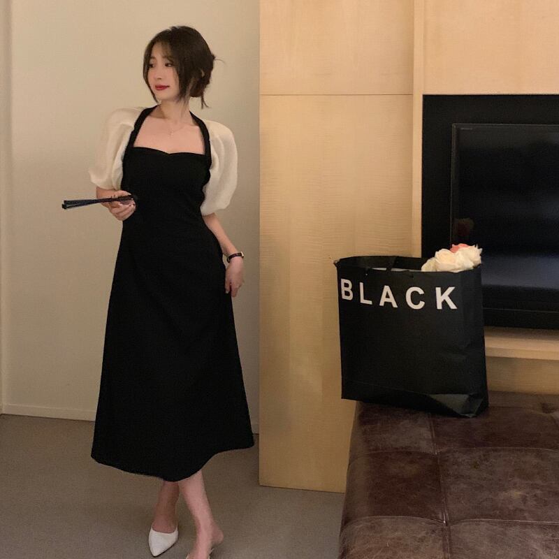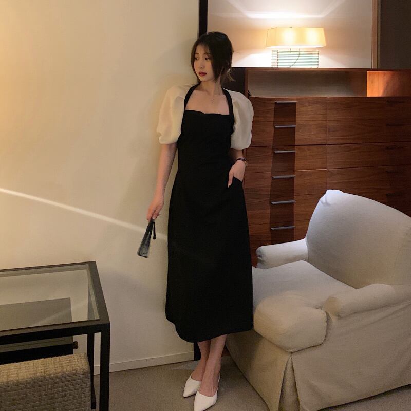 シックでユニークなニッチなデザインのステッチパフスリーブウエストスリム気質ハイエンドドレス2022新しい女性 yingd83642829824