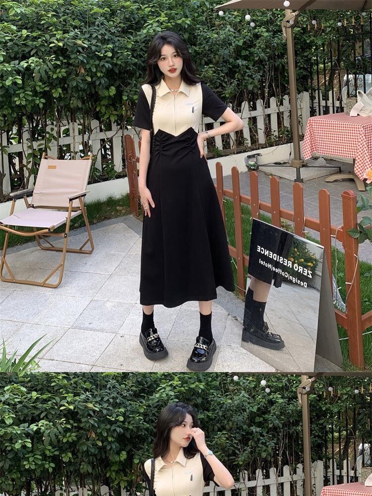 シックで個性的な見事なスカートの質感ハイエンドセンスロイヤルシスターウエストは細くてスプリットポロカラーワンピース女性夏 サマー 夏物 スカート yingd3610424076