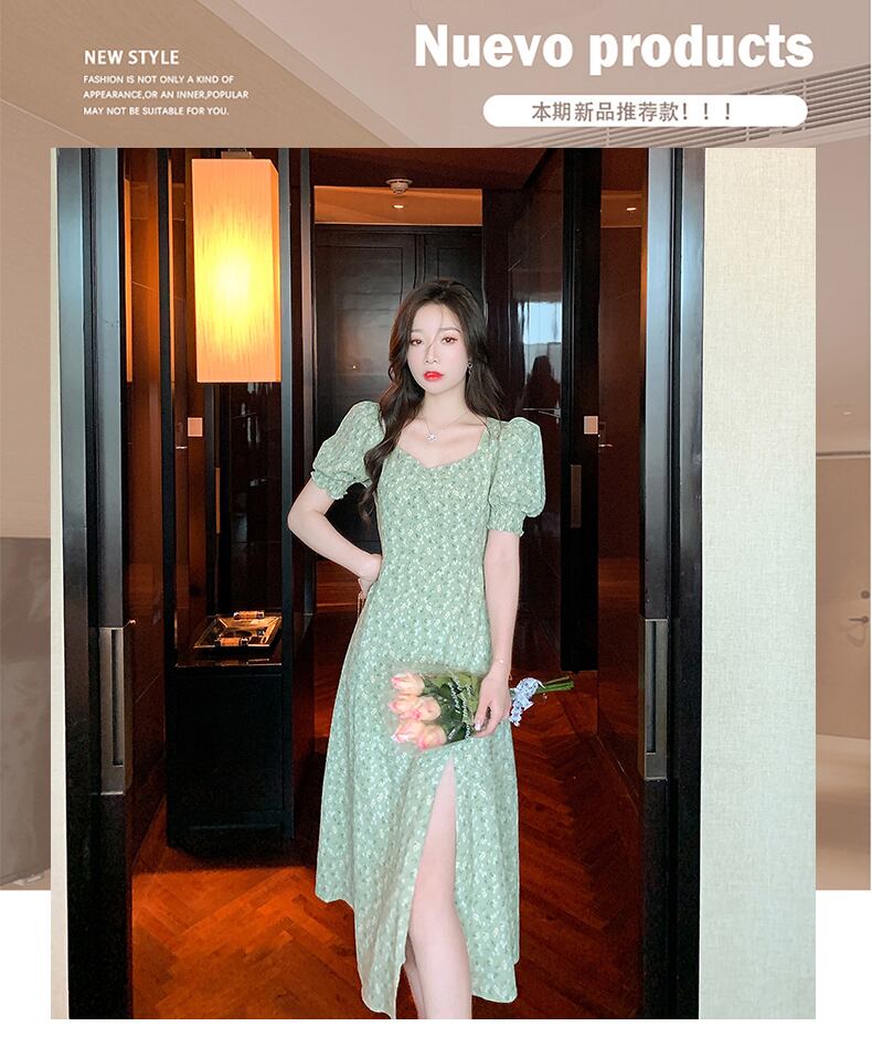 スクエアネックパフスリーブフローラルドレス2022新しい女性のシックなウエストイレギュラーフローラルドレスデザインニッチ 花柄 スクウェア yingd17041535454